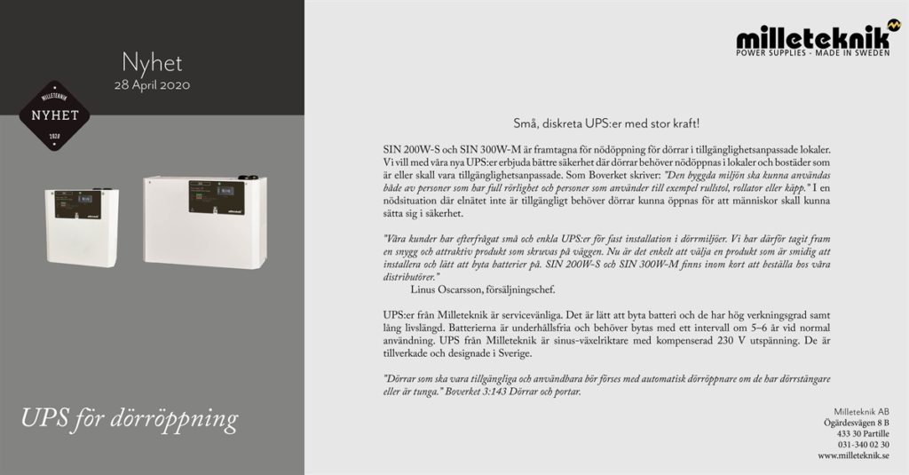 Milleteknik lanserar PoE med batteribackup