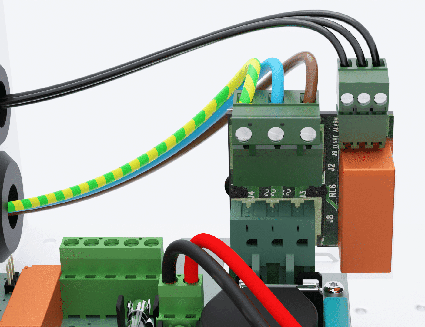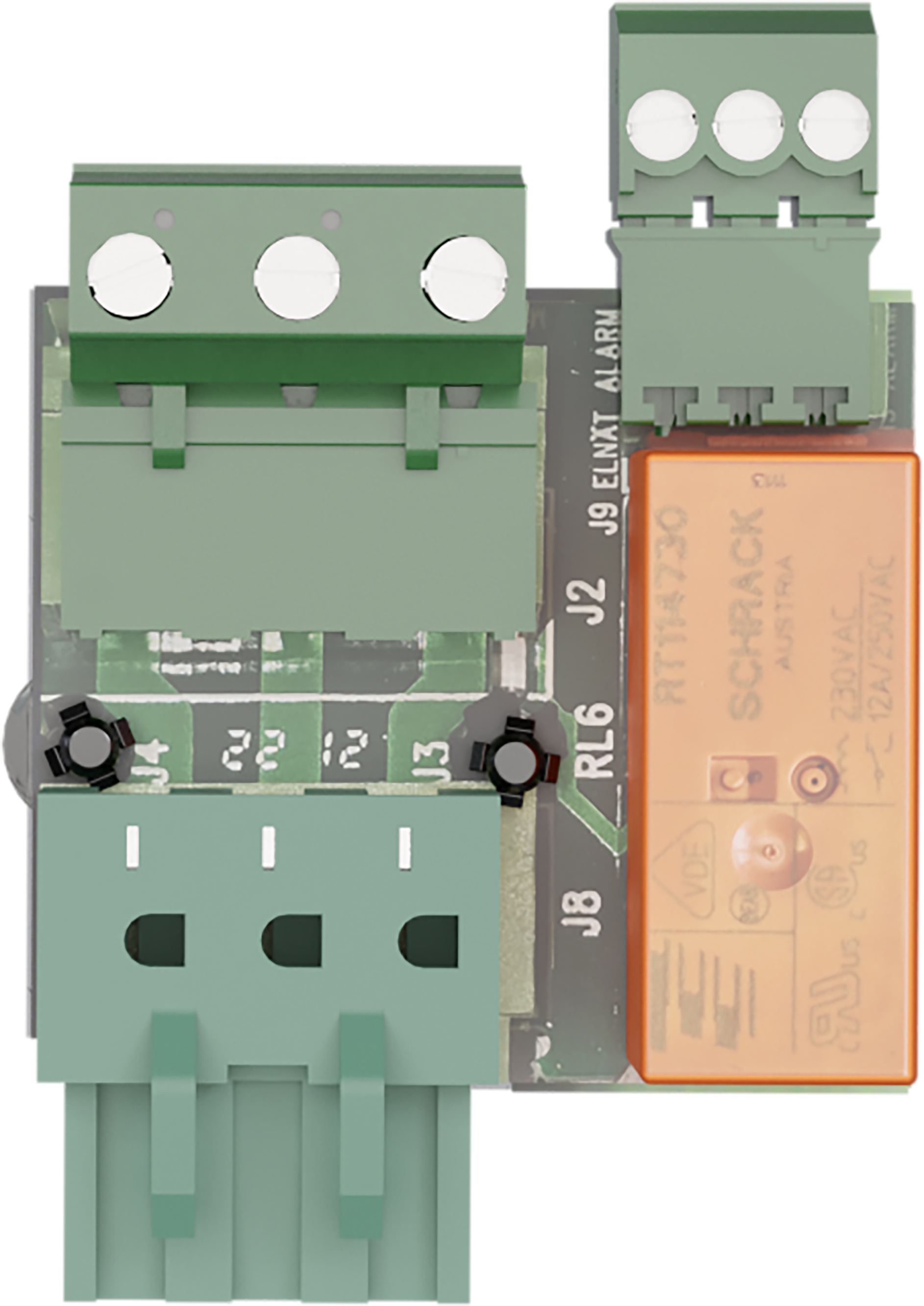 Larmkort för ECO M och ECO FLX S. Kortet monteras på elnätsplint och ger larm via relväxling för nätbortfall.